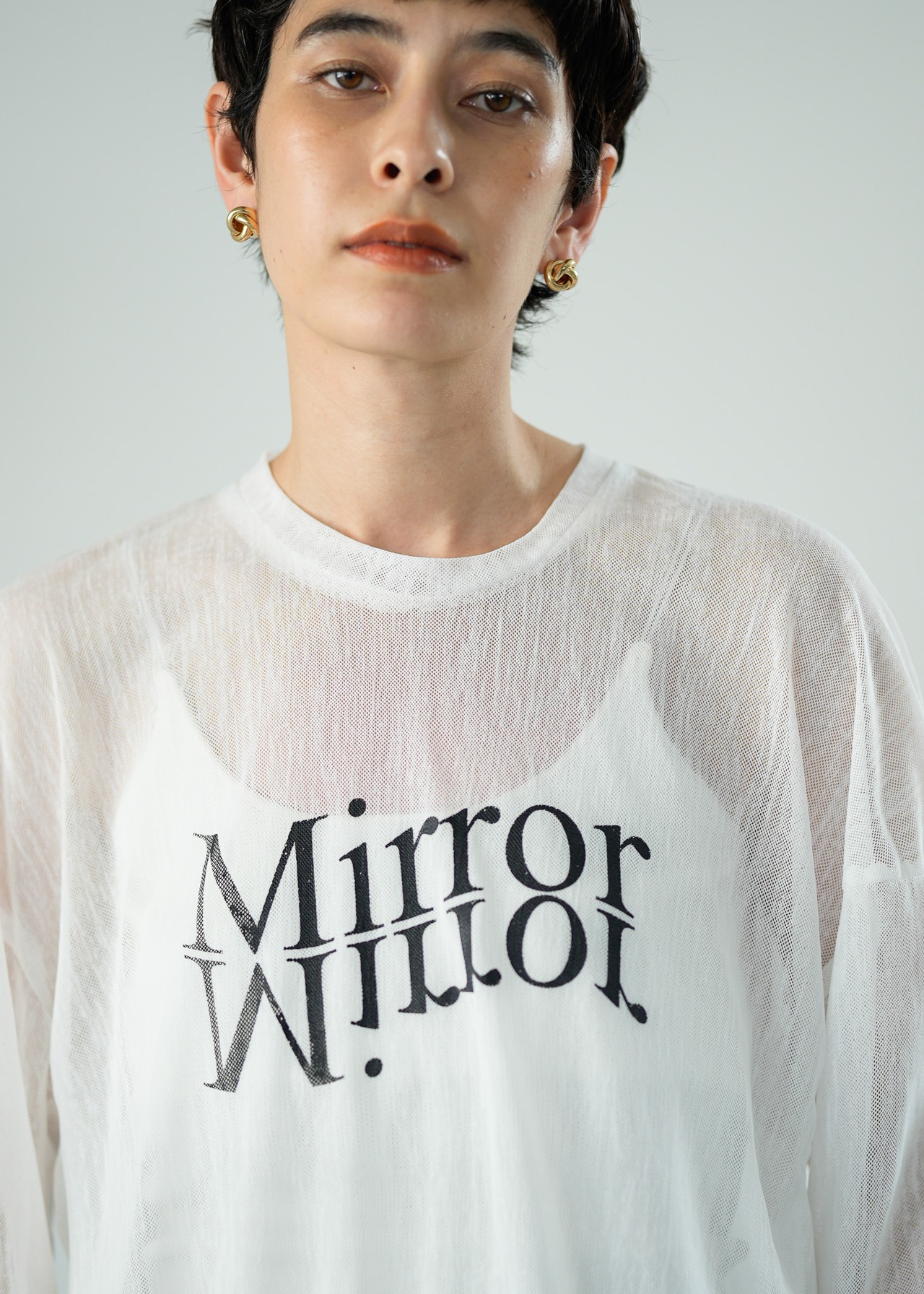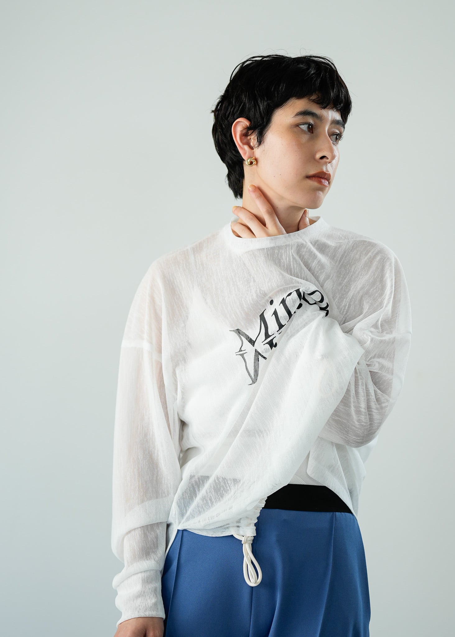 <Lallia Mu> メッシュロゴプルオーバー