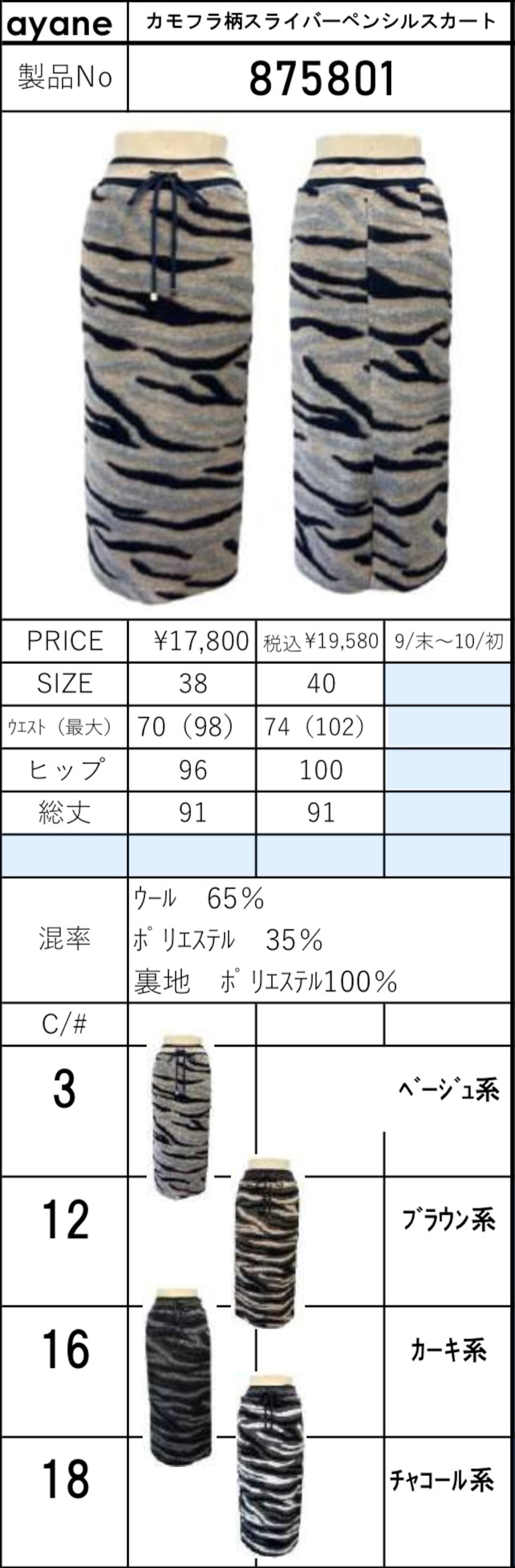 <ayane> カモフラ柄スライバーペンシルスカート(ベージュ系:38サイズ)