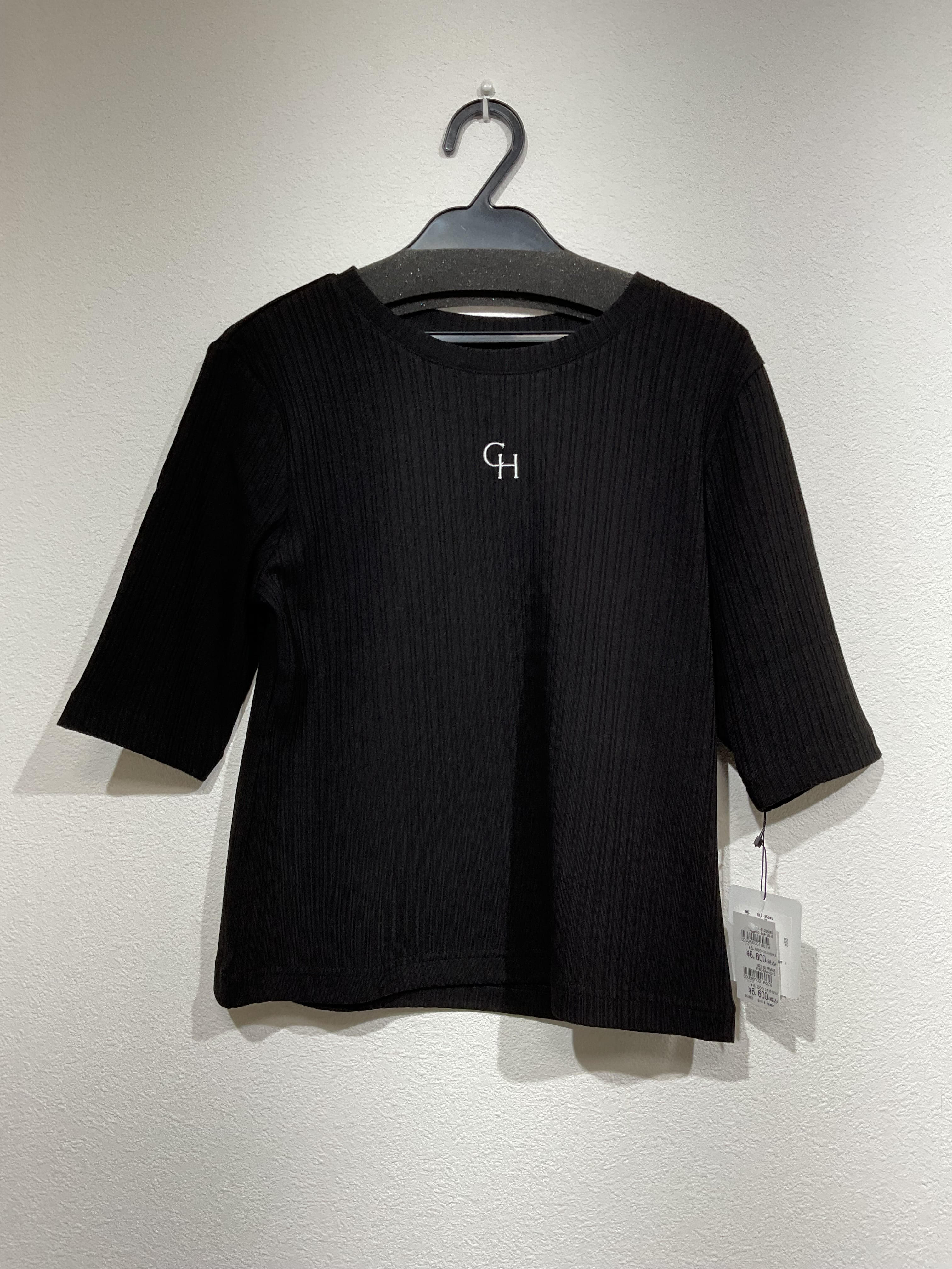 <CLOCHE> 五分袖ポイント刺繍リブTシャツ