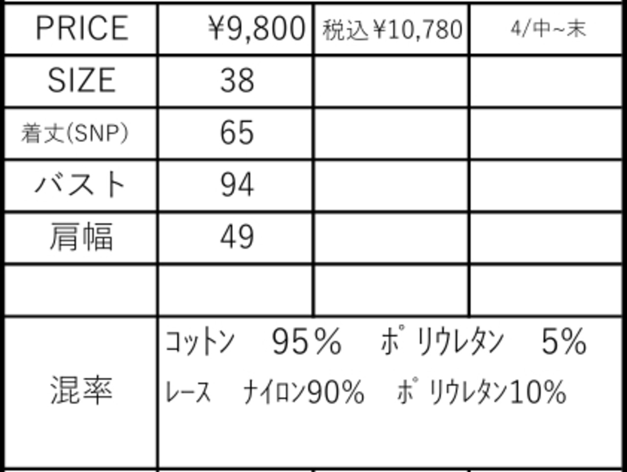 4月中旬~末入荷予定