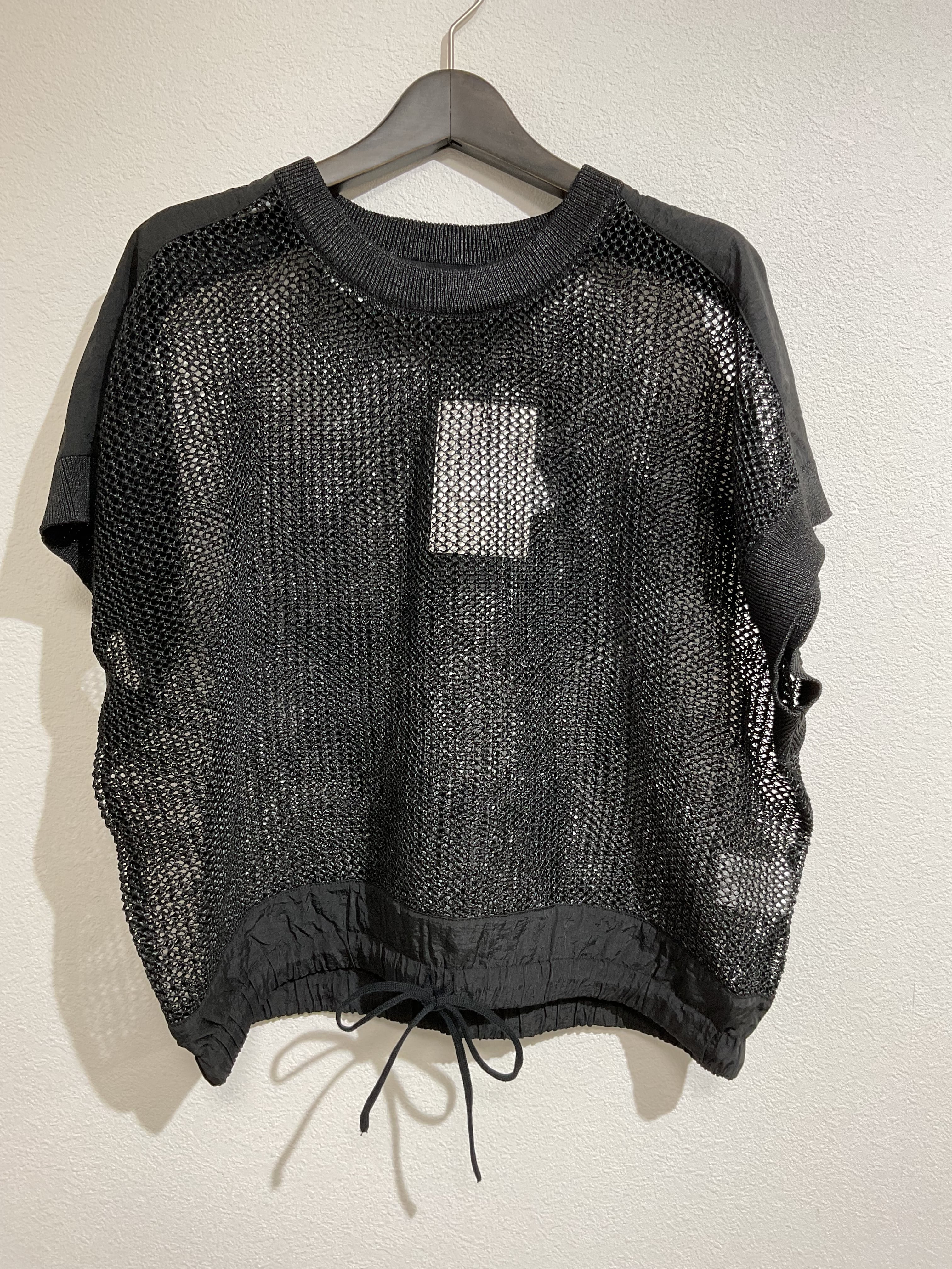 <MuNich> スカシ編みニット×タフタドッキングショートプルオーバー