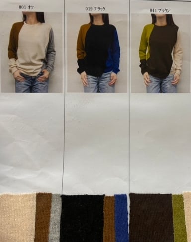 【ご予約分】<PLUS PLUS> コットンカシミヤ切替配色