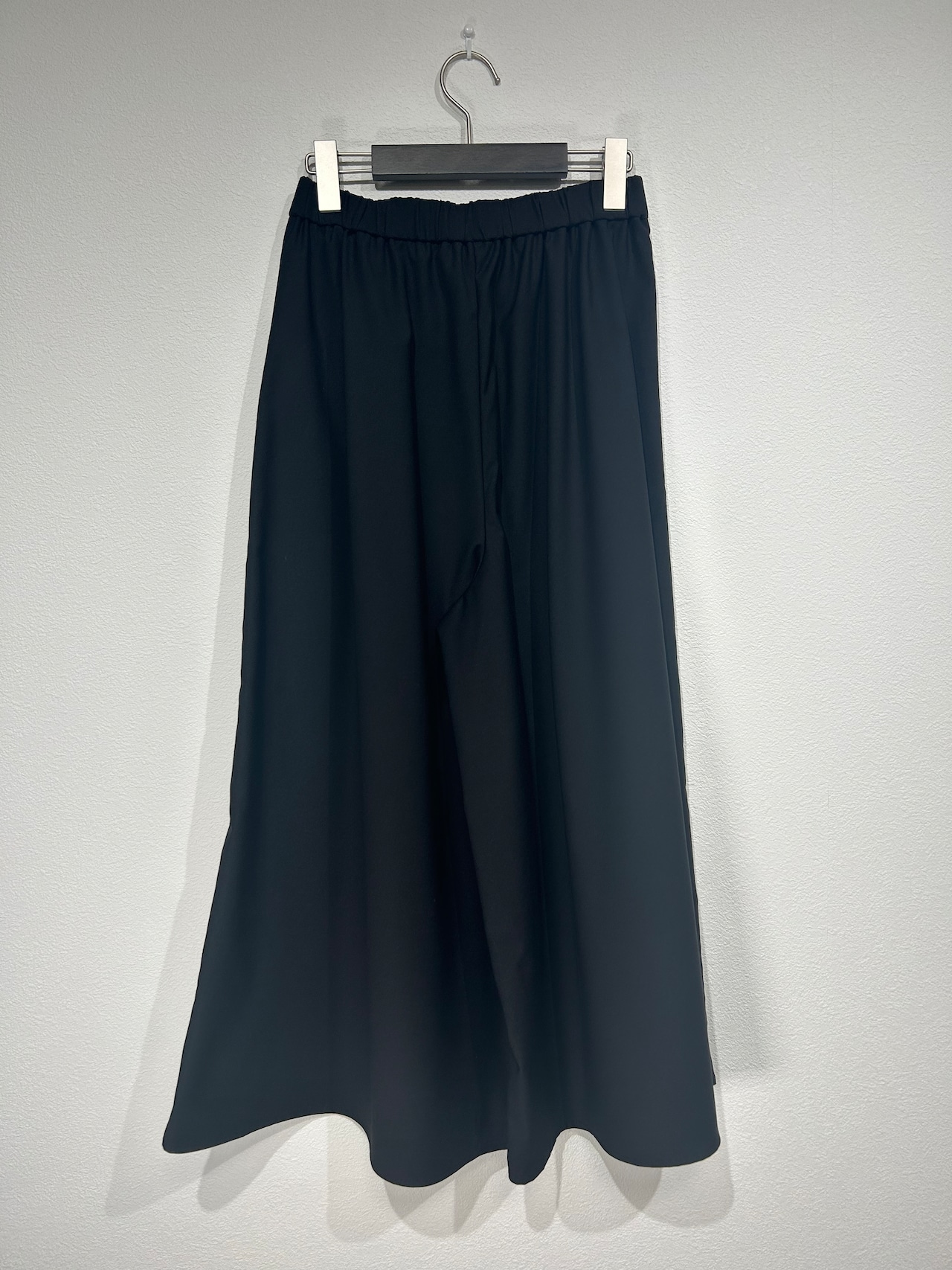 流れるようなドレープが美しいデザインで、ワイドシルエットで揺れ感がまるでスカート。