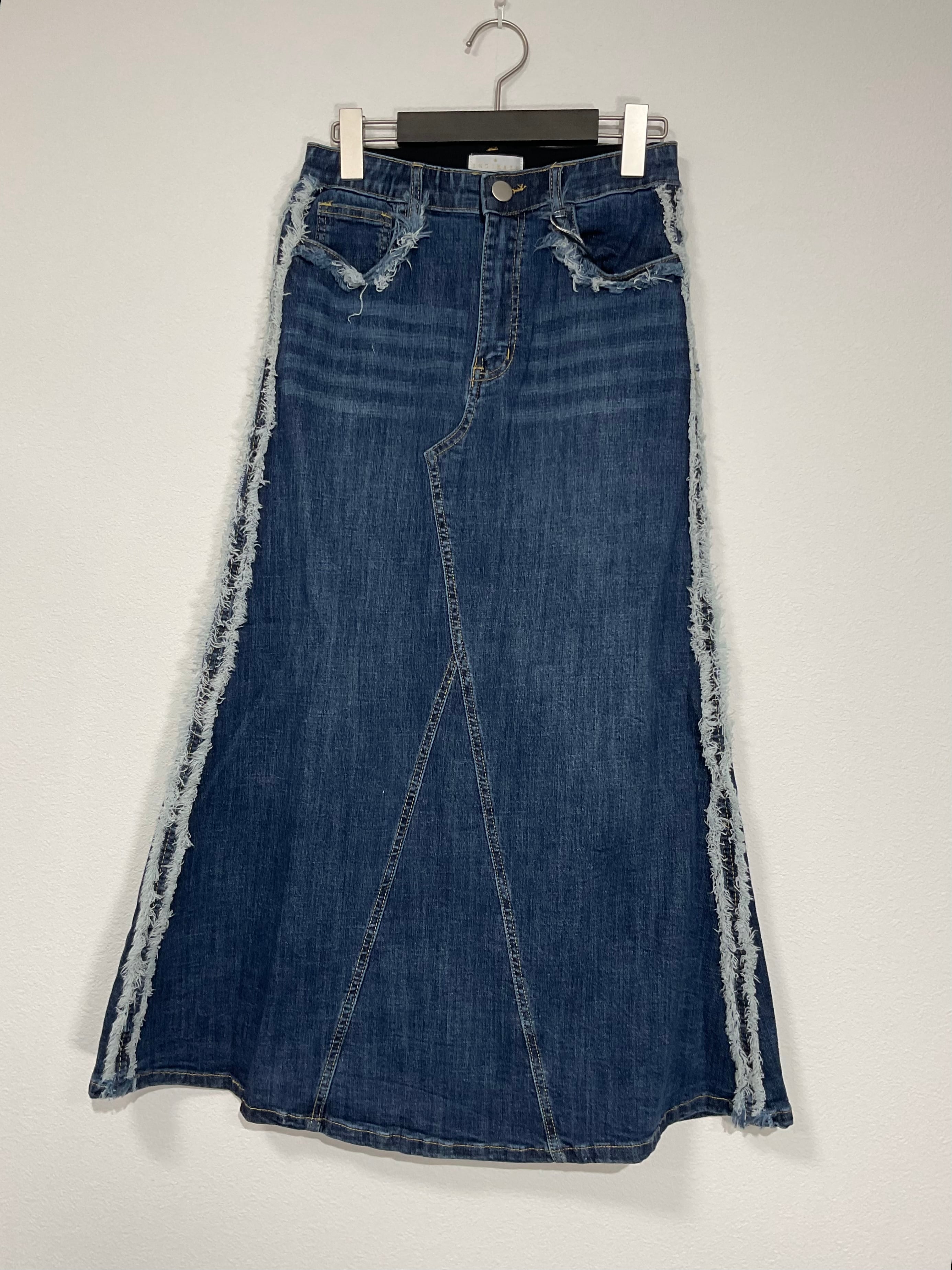 縁にフリンジが施されたスカート。